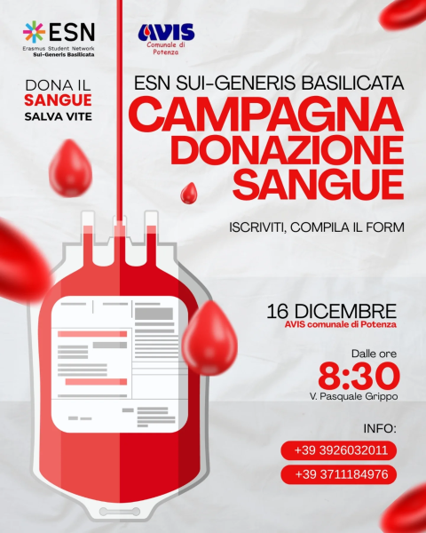 Ti invitiamo alla nostra giornata di donazione del sangue, in collaborazione con l’AVIS Comunale di Potenza!