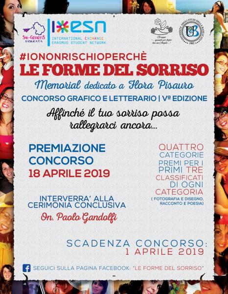 L' associazione europea universitaria ESN Sui-Generis Basilicata - Erasmus Student Network é lieta di presentare "#IONONRISCHIOPERCHE' - Le Forme Del Sorriso - V Memorial dedicato a Flora Pisauro-